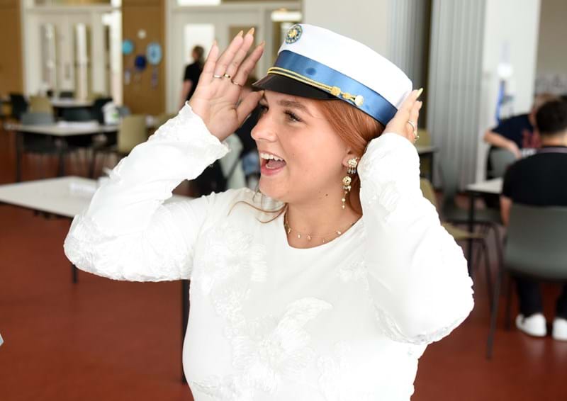 Ditte Rosa Kold er blevet årets første student fra den 2-årige HF på HF & VUC Klar i Slagelse. Hun afsluttede sin eksamen med et flot 10-tal i engelsk og kunne derefter fejre sin hue sammen med familie og venner.